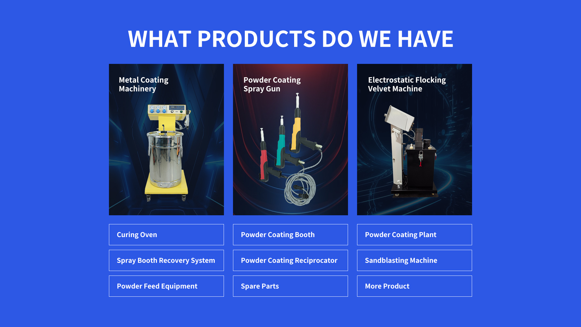 A typical China Automatic Powder Coating Spraying Equipment system includes robotic arms, conveyor belts, electrostatic spray guns, powder hoppers, PLCs, and infrared curing chambers. Advanced models incorporate vision systems for real-time quality checks and cyclone recovery units to recycle unused powder.